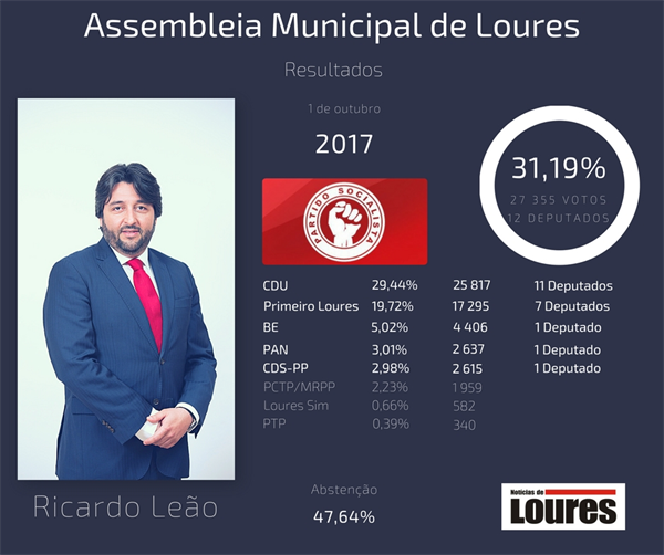 Surpresa, foi o que aconteceu quando foram conhecidos os resultados da Assembleia Municipal de Loures. Apesar de não ter subido em percentagem, em comparação com 2013, Ricardo Leão e o PS resistiram mais que a CDU, que trocou Fernanda Santos por Artur Lopes, como cabeça-de-lista. Uma vez mais o efeito Ventura voltou a fazer-se sentir, provocando uma subida de 3,5% ao candidato social-democrata Ricardo Andrade. Entre 3 e 5% foi o efeito de André Ventura em boa parte das freguesias e da Assembleia Municipal, não querendo com isto menosprezar os candidatos da coligação Primeiro Loures, mas é um facto a generalidade de subidas, principalmente nas zonas urbanas.